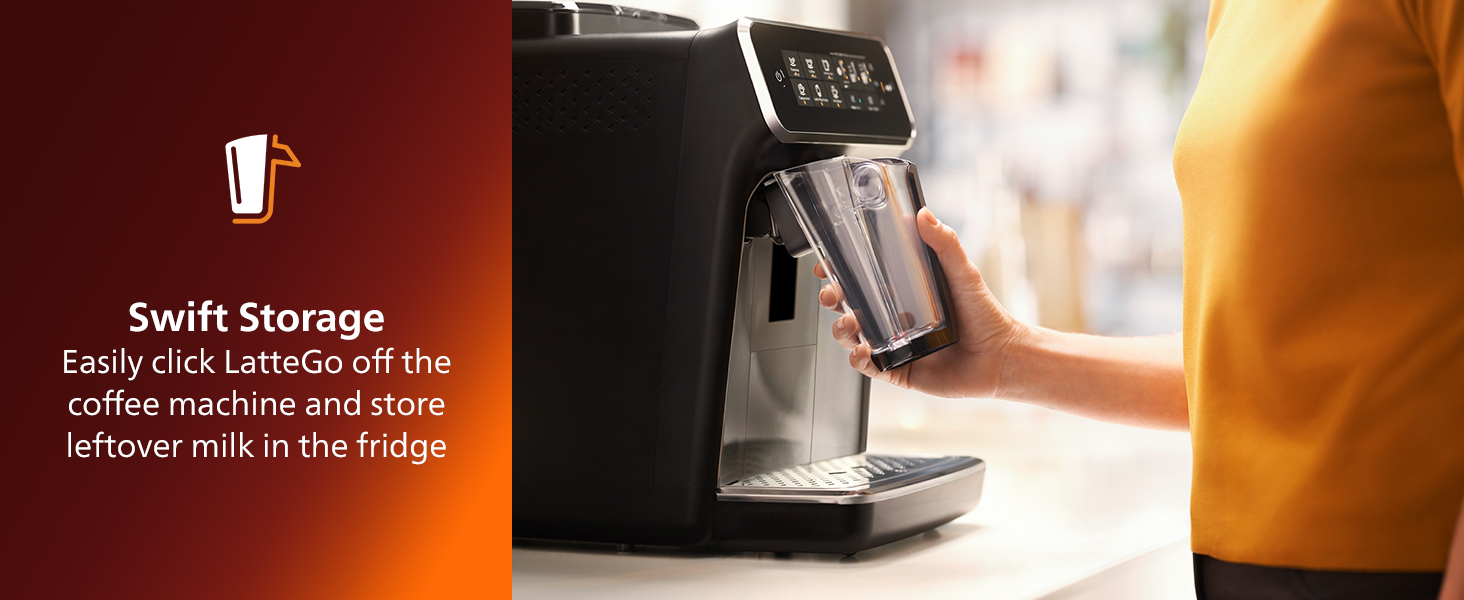 - Comes with: AquaClean filter, Grease tube, Measuring spoon, Water Hardness Test Strips, LatteGo storage cover